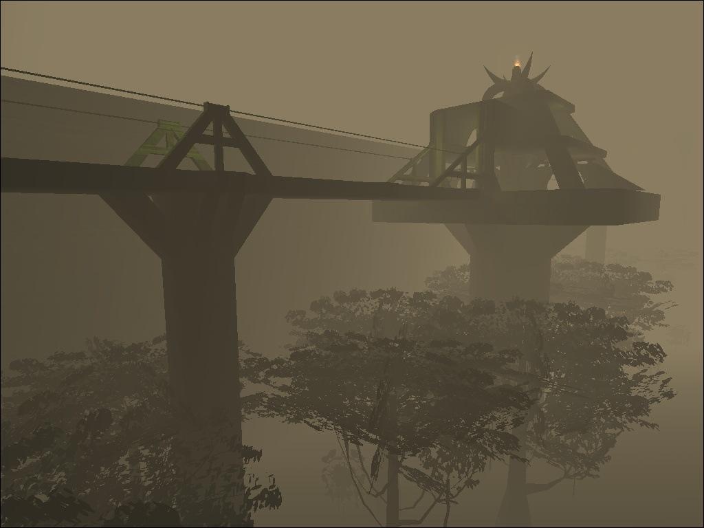 DESCRIPTION: This is primarily a CTF map set above the treetops of yavin, it is a much more Quake style map than many other jka ctf maps in that you have 2 bases and a small area in the middle. The idea behind it is for fast and exciting gameplay using both sabers and weapons, however, no splash wepons so that you can't just blow people off the sides from a distance. There are two entrances and three exits (a one-way door) to each base and the central 'pyramid' consists of three levels. Enjoy!