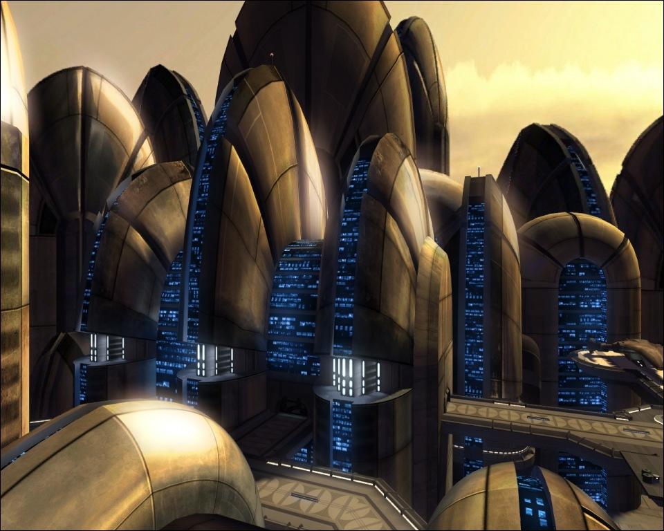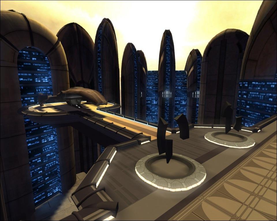 The Upper City of Taris at sunset, inspired by both the concepts for Taris as well as the game itself. Initially Darth Norman and I decided to compete mainly against eachother in friendly competition, as we are both MBII devs, though due to time restraints Norman had to sadly drop out :(. Ahh well, here is mine anyway.