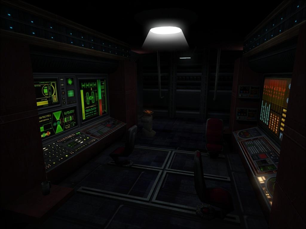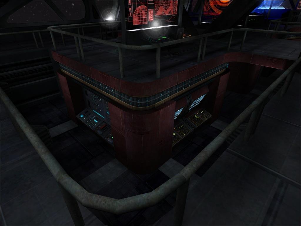 I designed this map as a small, contained, but highly detailed depiction of the bridge of an unpsecified Imperial starship. The layout of the map is very simple but it should be an enjoyable duel map. Look for little details like coffee mugs
