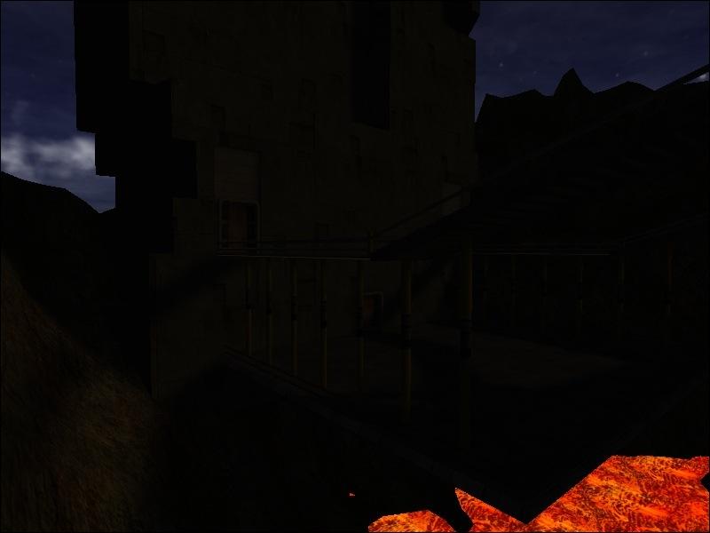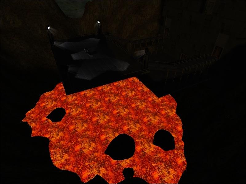 Description : A small platform jutting out from a building surrounded by mountains with a small pool of lava.