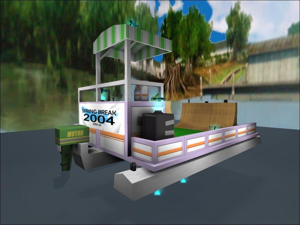 It's basically a floating platform with quarterpipes, speakers and boat stuff.