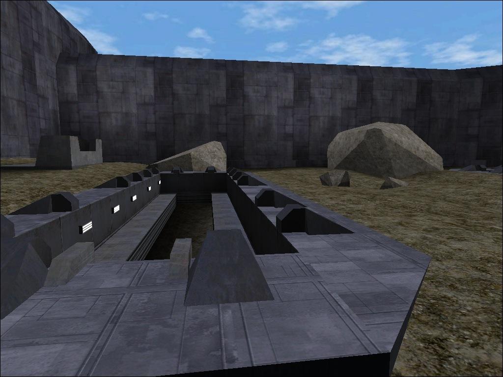 Well, if you're reading this one, I'm pretty sure you've read the previous description but I'll go over the old parts first for those who haven't. This map is how I kinda imagined the army part of the academy based on Carida. For those who're clueless about that, they've got the Galaxy's best training program, it's where the most skilled officers usually come from. Aaaaanyway, the map itself consits of: the academy with the type of rooms you'll expect. A landing zone with a Republic Gunship, which'll teleport you to a store house with lots of stuff to explore. Then, there's also a gate at the academy that leads to a small training field which also doubles as a good strategic point to hold in case of a ground attack. Past the field is another gate, leading into the city. In the city, you can find the kind of buildings you'd expect so I'm not going to bother writing that up. Finally, from the city, you can go towards a... dun dun duuuun, rancor cave, complete with cave, rancor, rain, failing lights, bones and a small camp. The rancor doesn't respawn, just so you know. Well, that pretty much sums it up. But, you'll find that in-game, it's all alot interesting and less boring than this description.