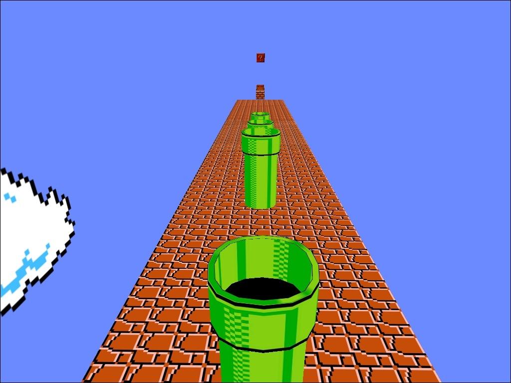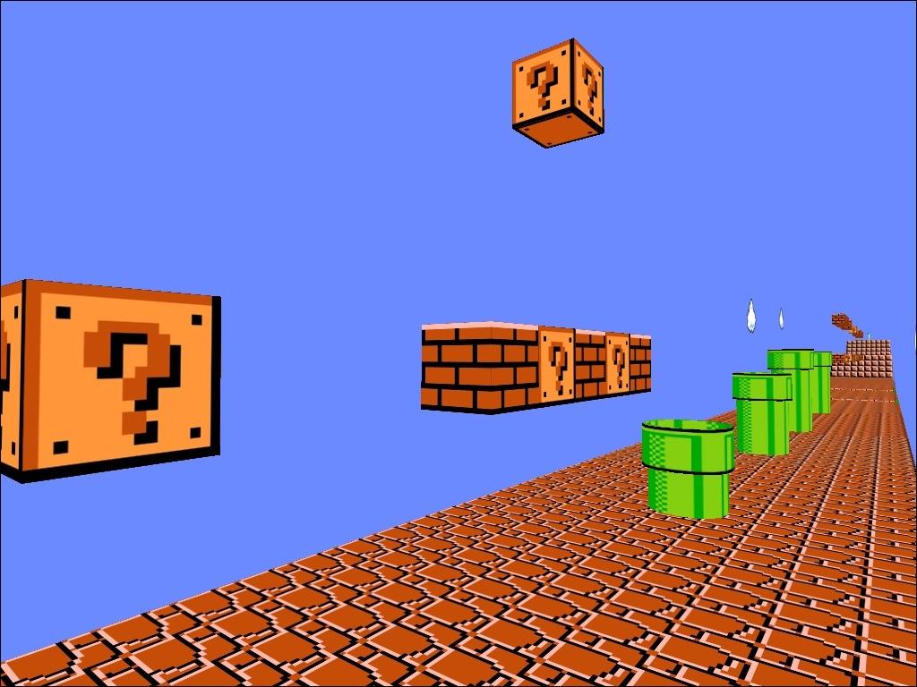 Okay. The map includes all of the features from the original game that I can think of, including animated "?" blocks (which make sounds when hit), breakable brick blocks (performance issues to be fixed soon), A working warp-pipe, moving clouds (you heard me), and a moving, sound making flag. PRETTY COOL I KNOW :) But in NO WAY am I done yet :).