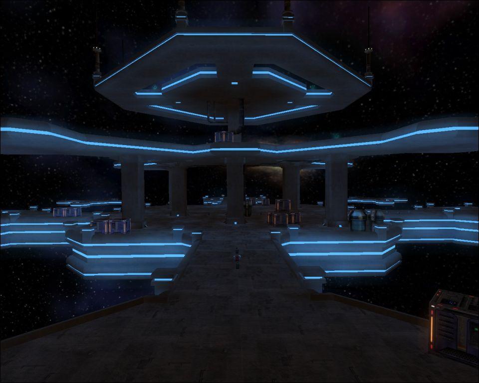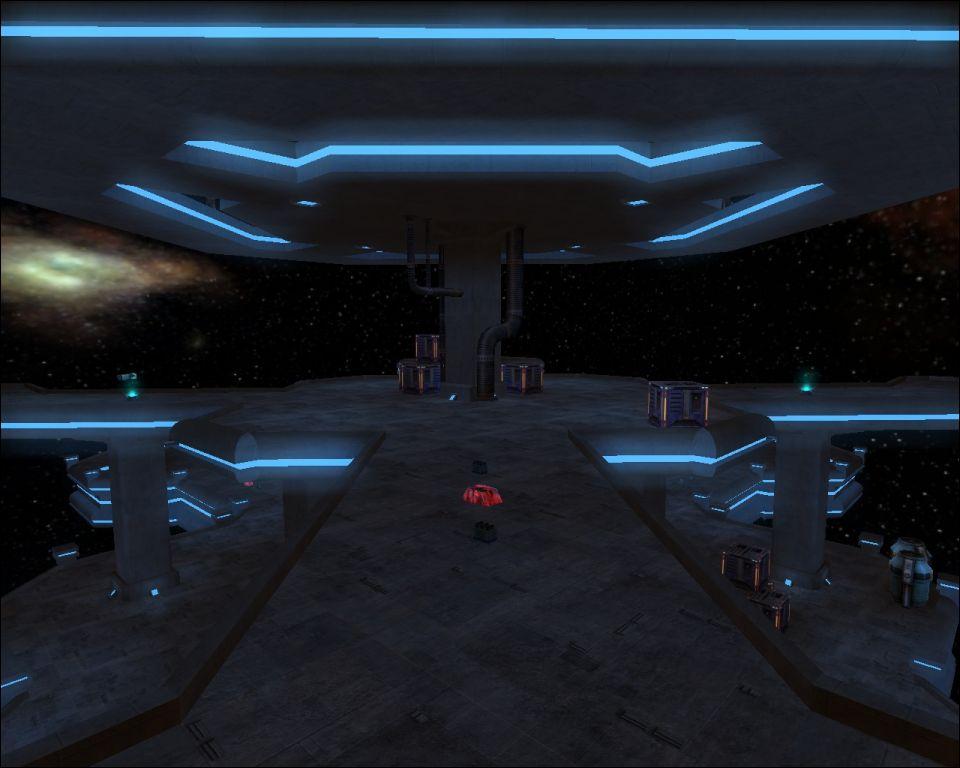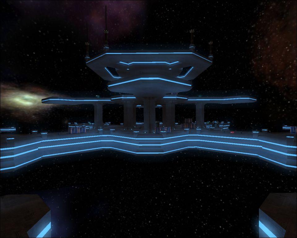 A platform floating in space. There are three levels and jump-pads you can use to quickly get around the map. I started working on this map a long time ago, but I never finished it. I thought I lost it when my computer died, but I found a backup. It's not perfect, but I thought it would be better to fix it up and release it instead of just letting it sit on my hard drive.