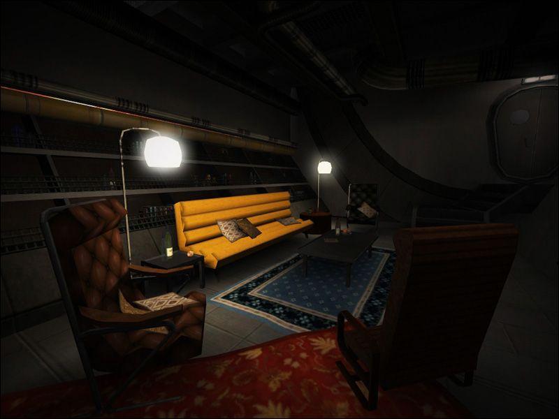 Due to the duplicitous nature of the design there are areas of the ship shown from the inside to appear like the outside that don't quite match up. For example, the seating area in the kitchen is scaled smaller in the exterior. Similarly, some of the lighting doesn't quite match up.