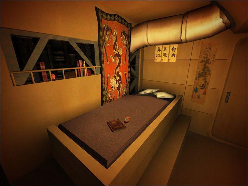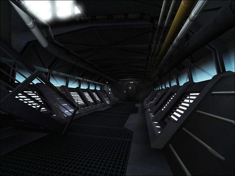 Serenity, as mentioned by it's design team, is one of those few sci-fi space vessels that doesn't suffer from the Tardis effect. (Being much bigger inside, than out). All that said, I couldn't for the life of me fit all the interior into the outer shell, without warping one or the other. I decided very early on that I would have to split the map into too. Besides, with Quake III's modest capabilities, a joining of the two parts would *slay* the user's fps.