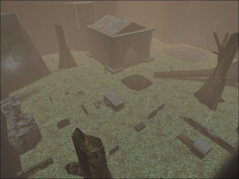 Its sort of a graveyard area, sorrounded by mountains, with a burial place in the center of the map, and ghost walks around it, sadly, it can die.