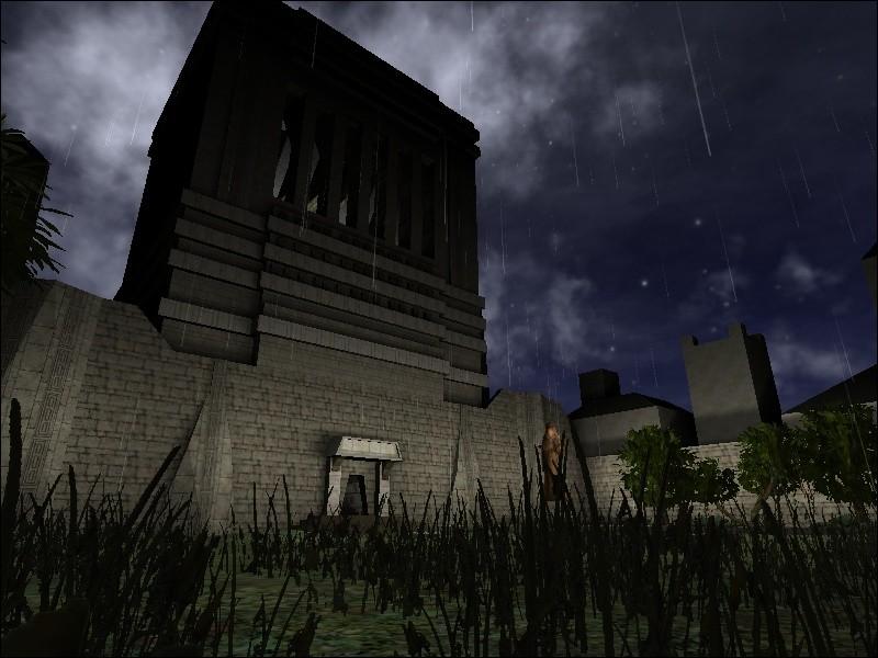 I started it way back in October/Novemeber as a test to create a Yavin like Jedi academy, but i soon became board of it and collected cyber dust for months. After a while i returned to it and finished off the main hall and i wanted to add something similar to a river or lake, but decided that would suck up FPS like a sponge so i decided a courtyard area would probably be more suited. My idea for a water based feature wasn't completely scrapped though as i decided to make an indoor bath house, that looks real neat and has been made to look as if its giving off a creepy green aura inside.