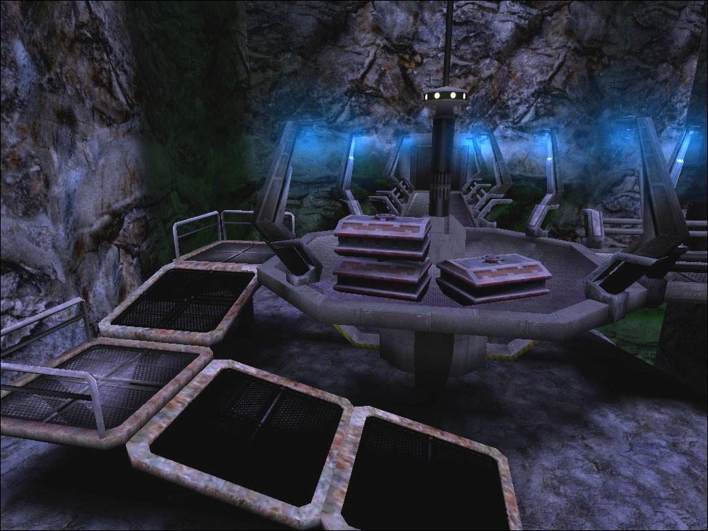 I've had this guy sitting around for a while, now. It's a small FFA map, mainly an experiment. Looks really wierd, but I like it. It's a good ethereal setting for a slugmatch.