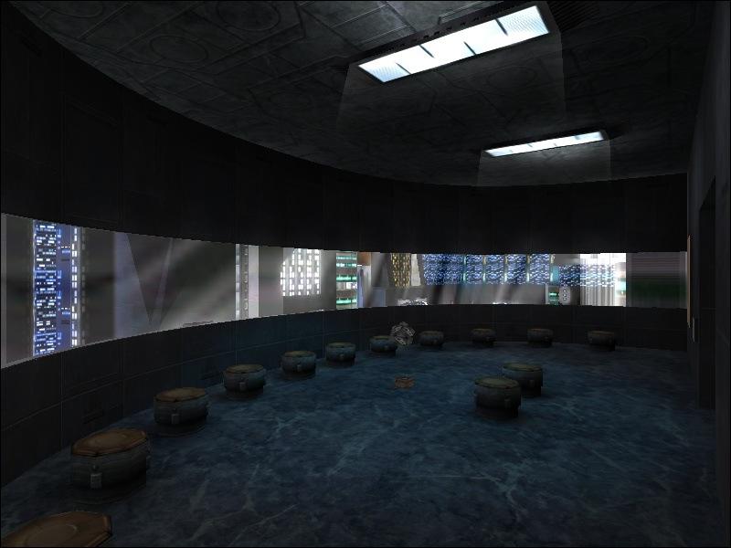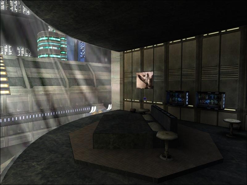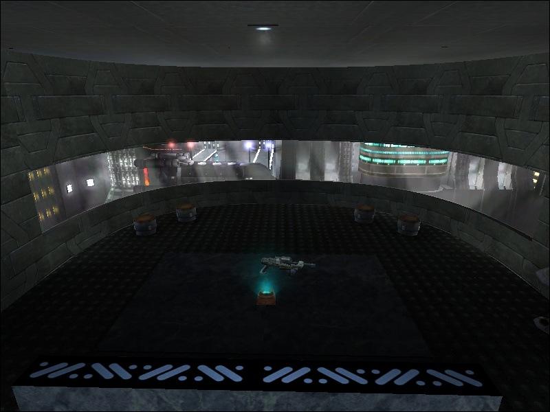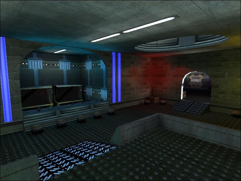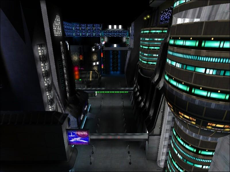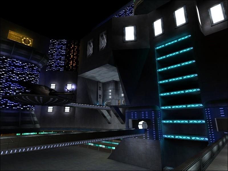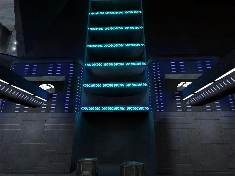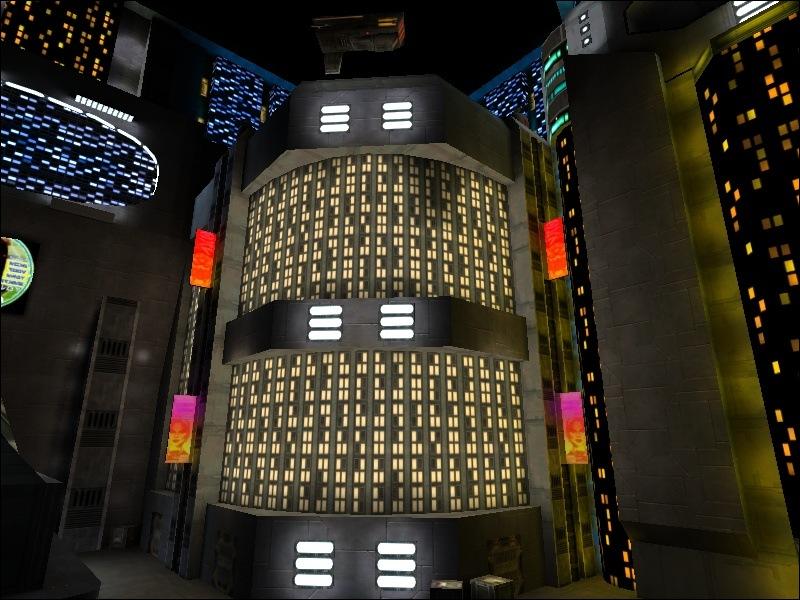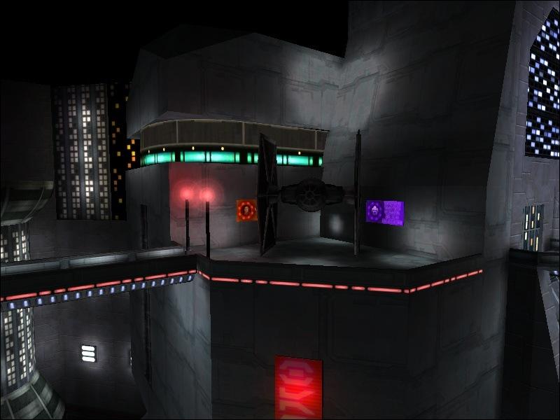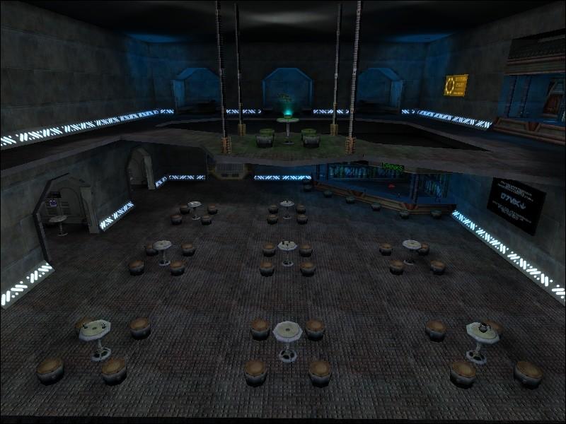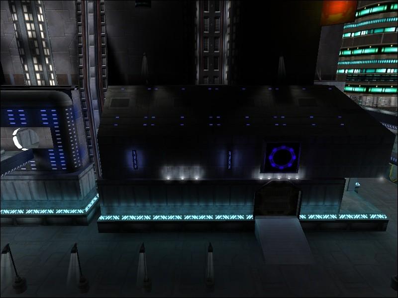 This is a Coruscant themed map set in and around Episode II, you will find many many rooms to explore off the main streets; e.g. Bars, Clubs, Hotels, a Swoop Garage, Cinema e.t.c. There is also a secret room which you can look for in one of the Bars, Happy Hunting! The CTF is designed to be lots of fun as the two teams have different advantages; the Red flag is highup, in an easily defendable position, whereas the Blue team are stocked up with tons of weapons, and both teams have hidden gun turrets. This level can also provide a great sniper game with it's many vantage points in the tall buildings and with the dark lighting in the low-lying levels.