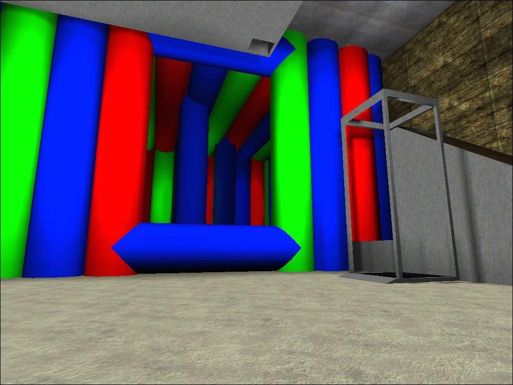 Games area which contains a cieling maze, A strange bouncy castle resembling