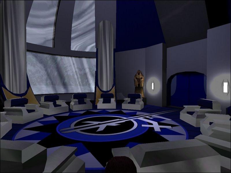Base info : This map was made FROM SCRATCH. All textures are either from JK2, JKA, or made from scratch in photoshop, or from pics off the net (TyrannicalFascist's pic of |Ex| members playing pool). The Knollvision renderings on Starwars.com were the basis for CountDubious' office complex, the Jedi Council. Other Starwars-like areas include the entrance, the archives, the High Council Chamber. And though Devmap's Bar and Grill was named after DevmapAll, CountDubious actually made it.