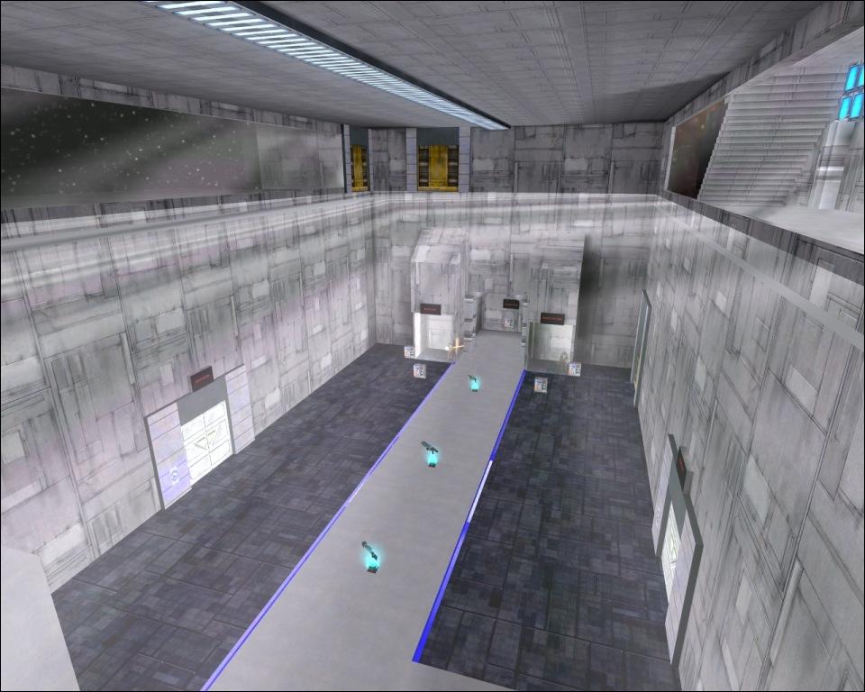 The map is a space station in deep space where only the elite imperial leaders go. The map has a council meeting room, a main room for duels,