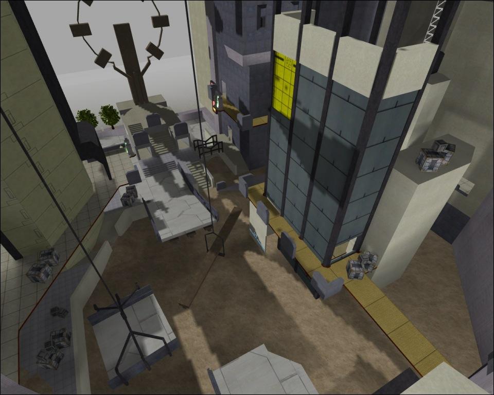 The map is a zone wiht some unfinished buildings, so they don´t look like very nice, but I think they are cool. Every building is connected whit the other four wiht platforms, so you can go from one building to another whitout step on the ground, that is a great point because in the ground you will be a easy target for all the weapons.