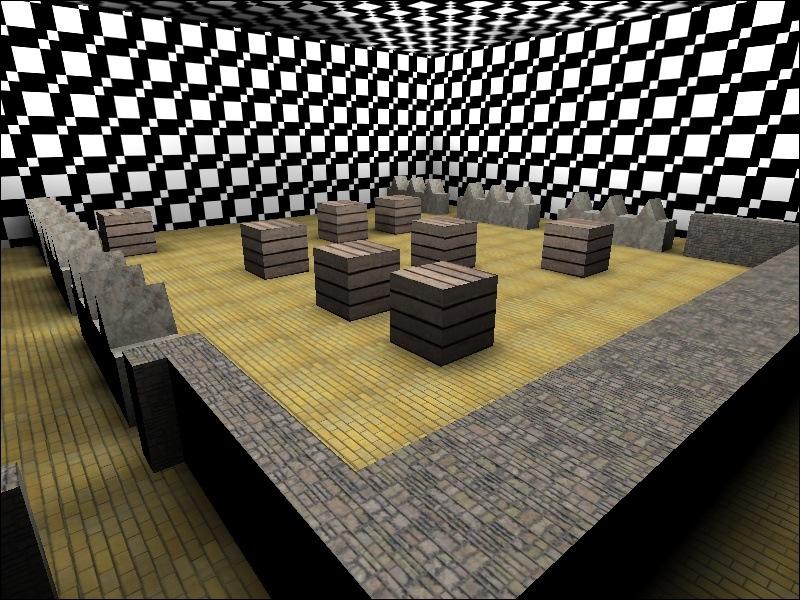 Description: This is my second map. I remembered to put textures in this time, so it should be better. This is LOOSELY based on a laser-tag game I played while on holiday in America. I say "loosely" because the only things I took from the place were the idea to have 3 stories and the metal coated stairs. On the ground floor there's a lot of tunnels and also a few raised up platforms (to fight on?). One floor up, there's a dueling section (clearly marked with colours incase anyone gets bored and wants to do the boxing thing "In the red corner..."etc). Finally, on the top floor, there's a pistol shootout, with boxes and walls to hide behind.