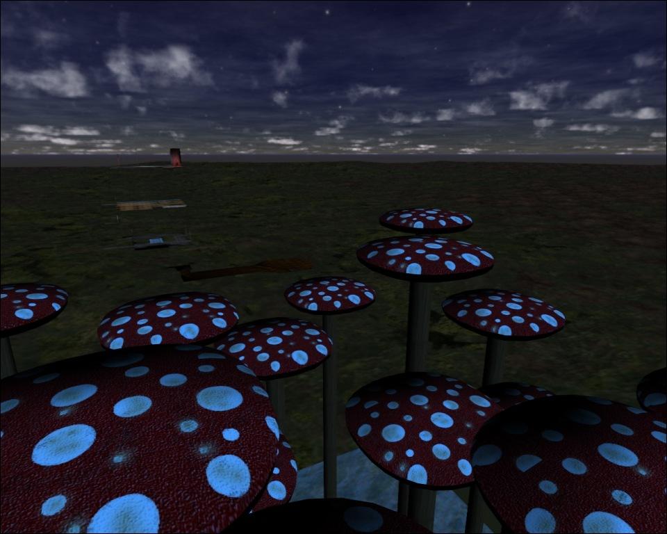 A secret dueling area on top of huge mushrooms to practice