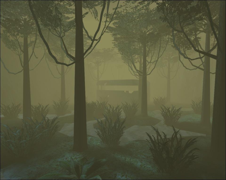 a muddy wet small jungle area with a bunker to pick off targets