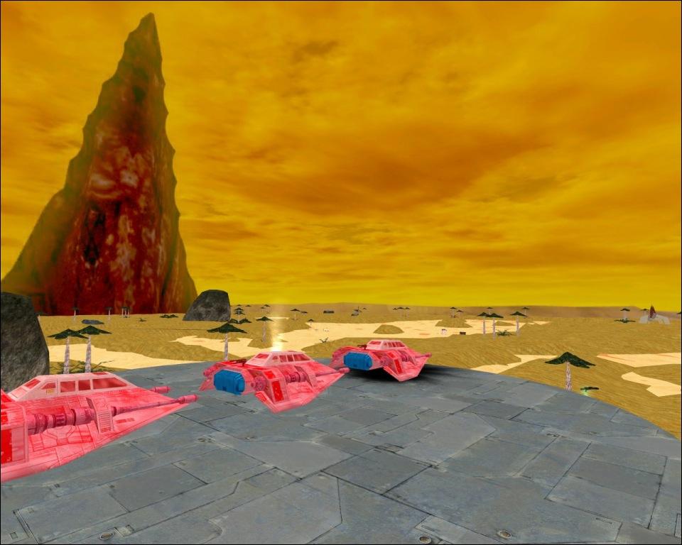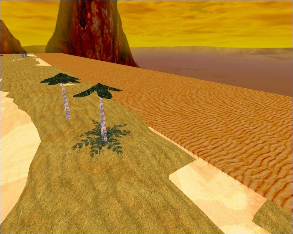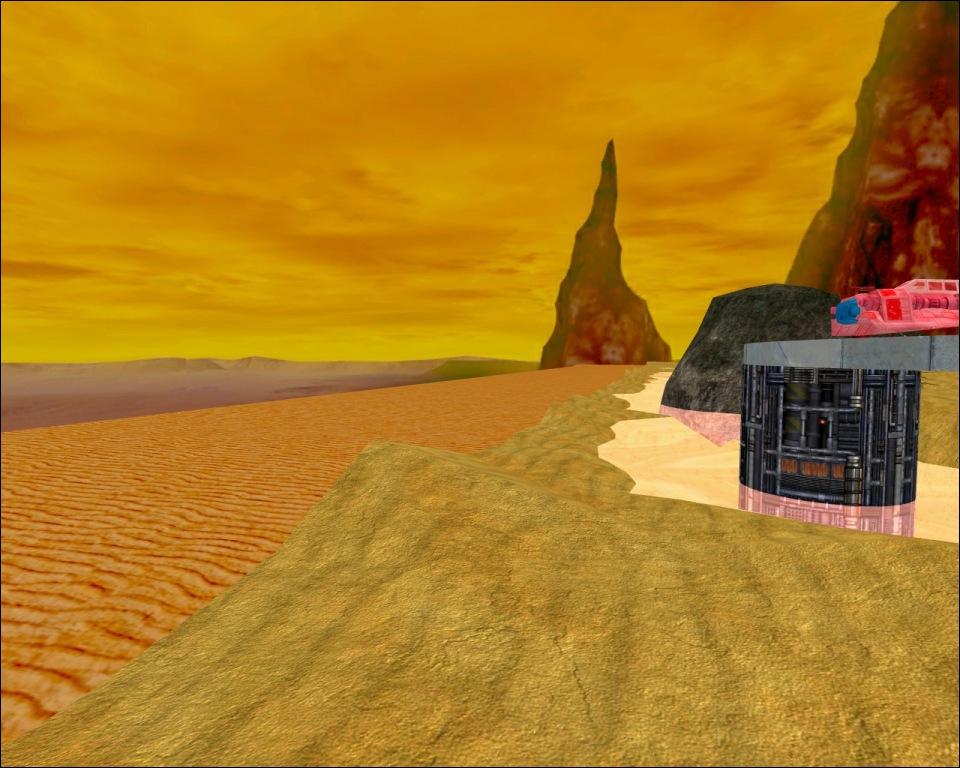 DESCRIPTION: The Great Wasteland of Nowhere ® :) Sand, sand, sand, junk piles, sand, sand, sand, some palm trees and other plants, sand, sand, sand, some hungry creatures, sand, sand, sand, some weapons :P, sand, sand, sand, contaminated water, sand, sand, sand, death, bones, flesh, sand, sand, sand, neverending wind, sand, sand, sand, sun and high temperature, sand, sand, sand, deadly radiation, sand, sand, sand... sand everywhere, 'he' always been there... sand, sand, sand... Well, it's not so bad down there :P Basicaly, it's an open-area, ffa-based map. Good for pwning :P and movie making. It's isn't very large, but you can fly quite high, though. Did I say fly? Yes, there are 3 speeders. There are also one swoop. Beware of local creatures encounters.
