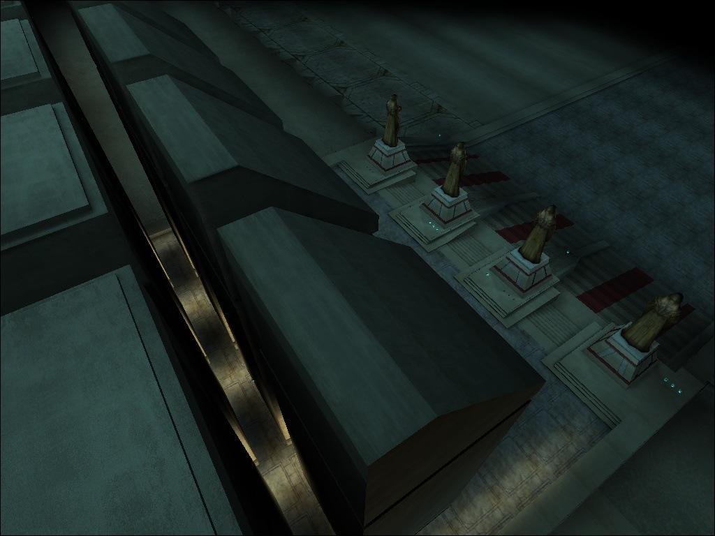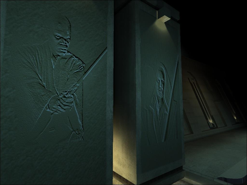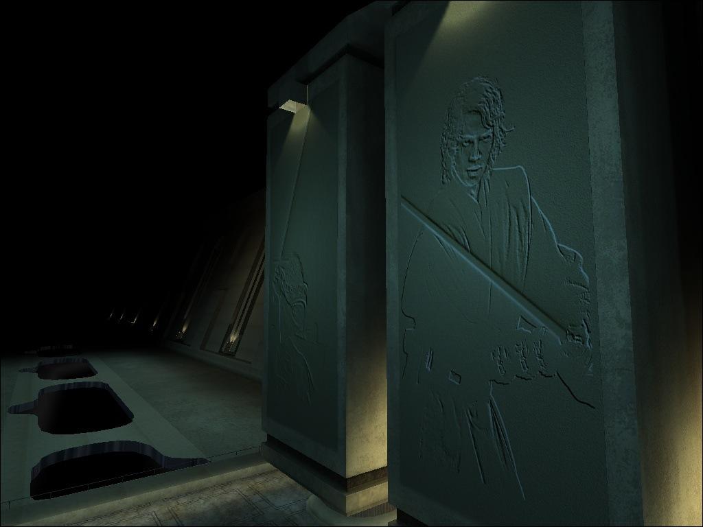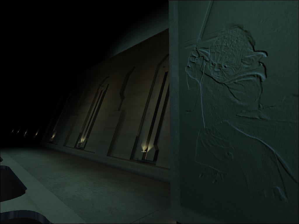 The Jedi Temple itself is sooo big that Radiant could not possibly cope with something on that scale, so I had to build just the illuminated 'playable' area at the base of the pyramid, where we see Anakin and the Clone Troopers advancing in Revenge of the Sith, and where we see Yoda and Obi Wan battling it out in the daytime.