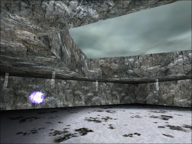 The Main Duel room. Its an ice cave with a hole in the top, peeking out to the sky.