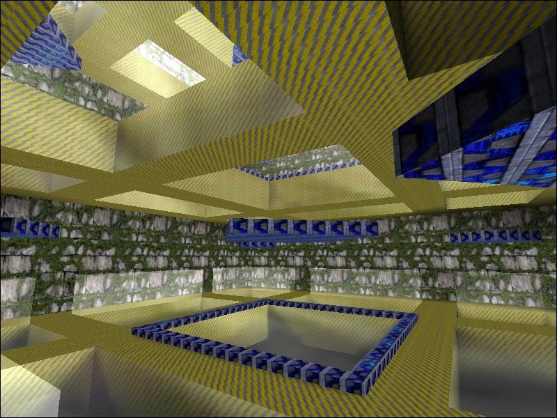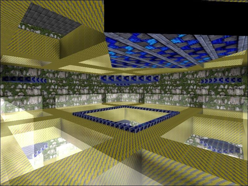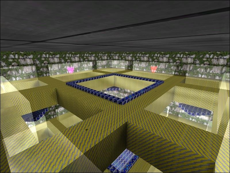 DESCRIPTION: A map with GLASS!!! There are three floors with walkways. Step lightly or the glass inbetween the walkways will smash, causing you to fall down to the level below. There are only three floors - there's a pit at the bottom