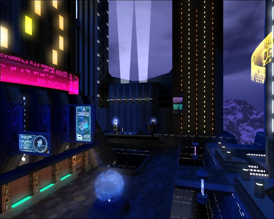 floating ad pods lend a futuristic atmosphere to the map. The FPS is very bad,
