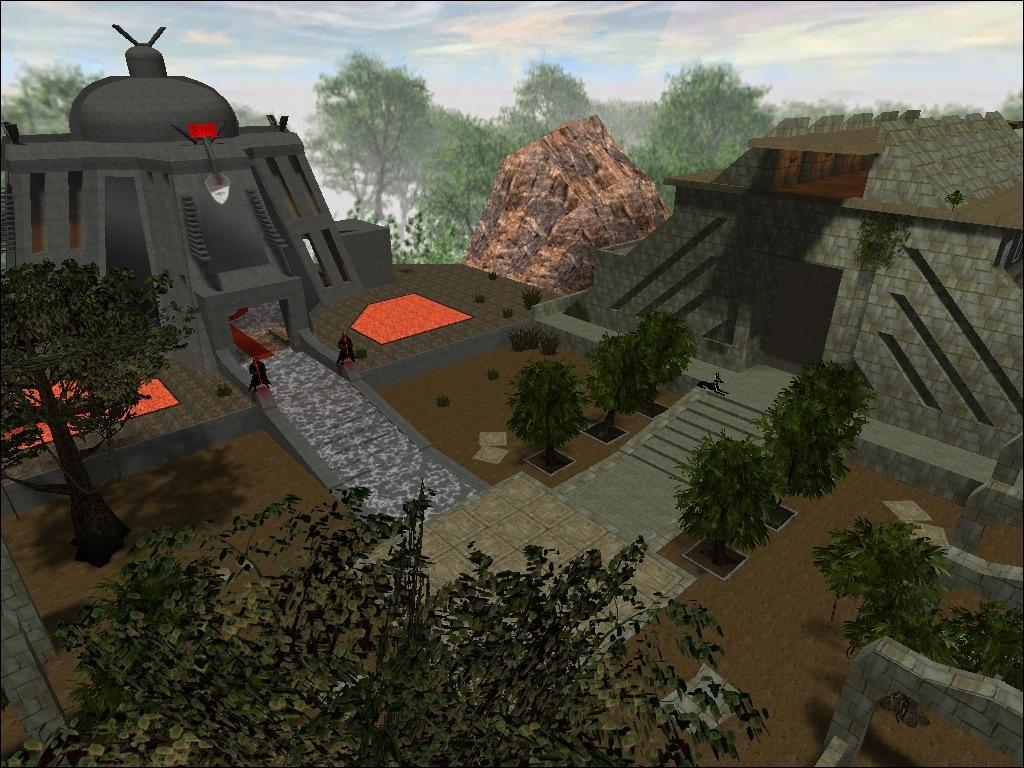 It contains two temples, one for the Sith and one for the Jedis. In an outtdoor world, they can do their fights