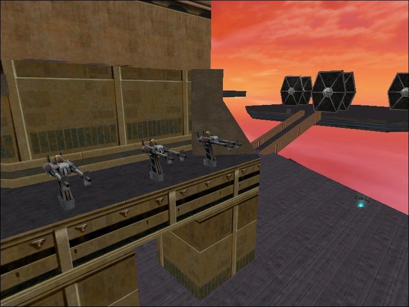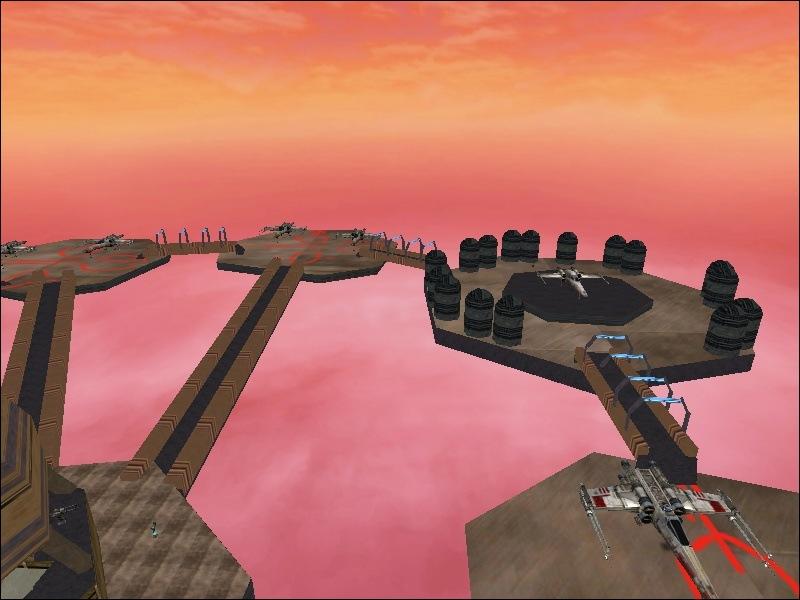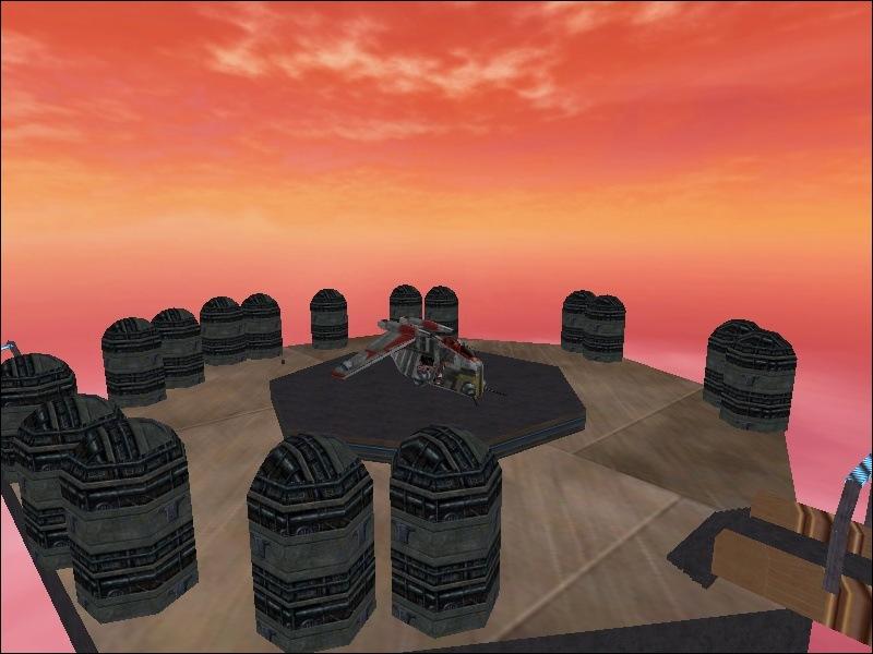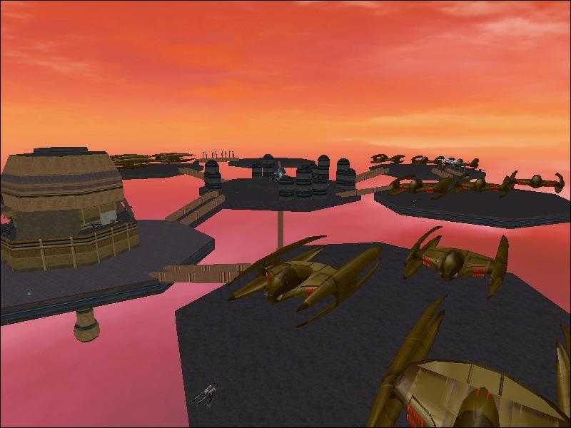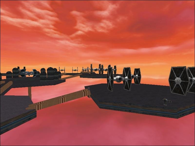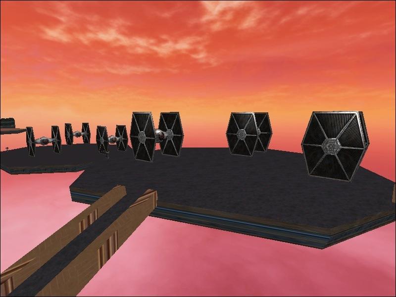 This is my third version of Battle Front Bespin Platforms. There have been some major imrovements over the last one. There are alot more vehicles, larger ship boundries, new sky shaders, the map is over three times as big that way there is more vehicle space to fly around, there are alot of weapons, more lightning has been added, and the geometry has been fixed.