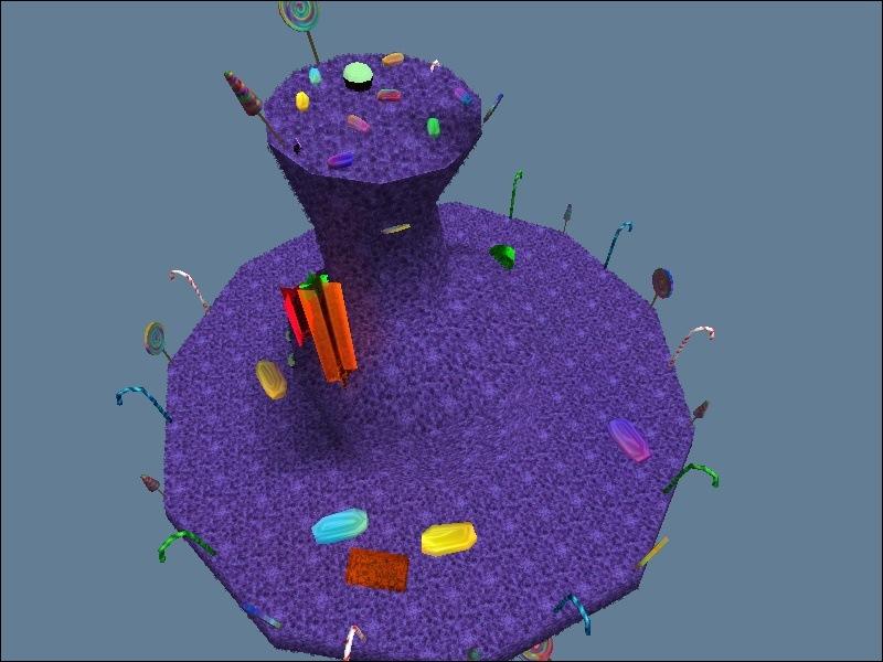 A candy zone (challenge - reach the puppie dog atop (platforming jump challenge))