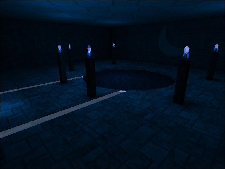 Things to know: A few things you might want to know, for one, all the doors on this map are opened by pressing your use button. (By default "R".) You will spawn in Rigurefs ship. You may start to feel a little cramped in the small ship, luckily there is a way out. From the ship's kitchen, goto the cockpit. To your left there will be a computer. Walk up to it and press the use button on it. You should be teleported to a version of the ship docked in a big circular area lit by the moons blue beams. To get out of the ship, run down to the bunkers and now, at the end of the hall, there will be an open hatch. Once your out of the ship you will see a door to your left which leads to the Lunar Temple. If you get stuck in the room with the beam because you fell and don't have a high force jump, jump into the beam. It'll teleport you back to the main hall. If you get stuck in the pool in the room with the crescent moon, swim towards the moon. There's a ledge that you will end up on.