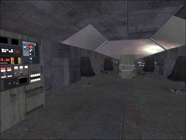 Known Bugs or Issues: The chairs in the cockpit of the ship landed at the temple have their bounding boxs behind the place they should be. I couldn't fix this because in GTK Radiant they were exactly where the should've been. And when you open the door to the pool, if you look down, you can see the void. I could not fix this because it already took my computer about an hour to compile it and I've no desire to wait through all that again for something you won't notice unless your trying to see it. Though I will admit the map would probably be better with that small change.
