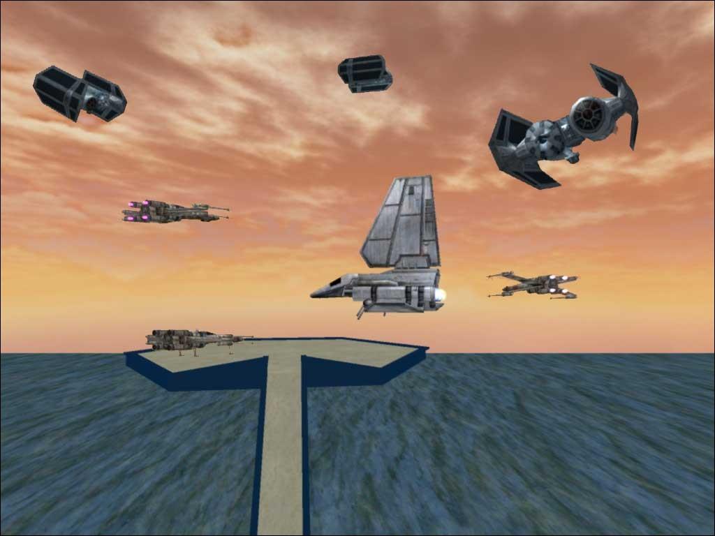 then jump back to a level-ground next to the X-wing, and hit the USE key.