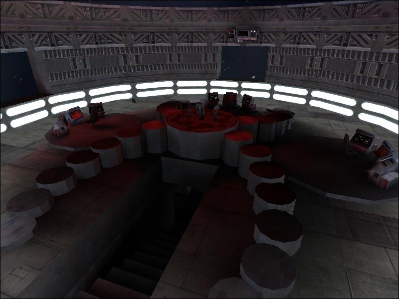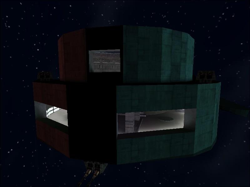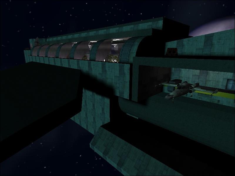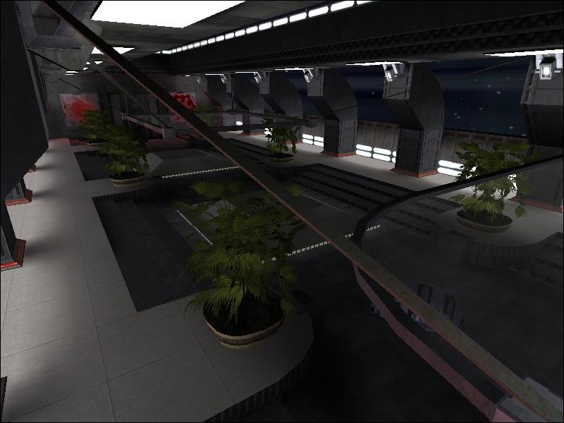You can leave the main ship via the drop down bays or the main hangar, and re-board via the main hangar. This map supports FFA, Team FFa and CTF gametypes. Guns are supported.