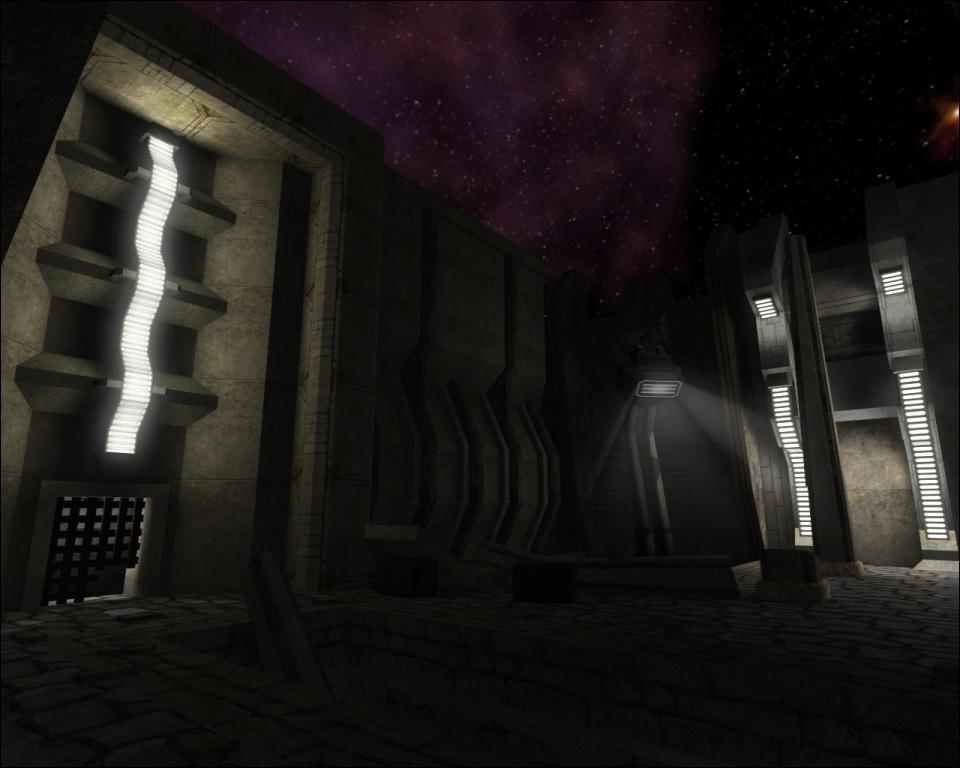 DESCRIPTION: It's a canyon, somewhere on Ord Mantel (Not too far from the abandoned city where you fought Boba Fett). There are some buildings and some old tunnels. In the multiplayer version you fight your opponent like usual, in the sp version you try to find tavion, who landed near the canyon with her shuttle, and kill her.