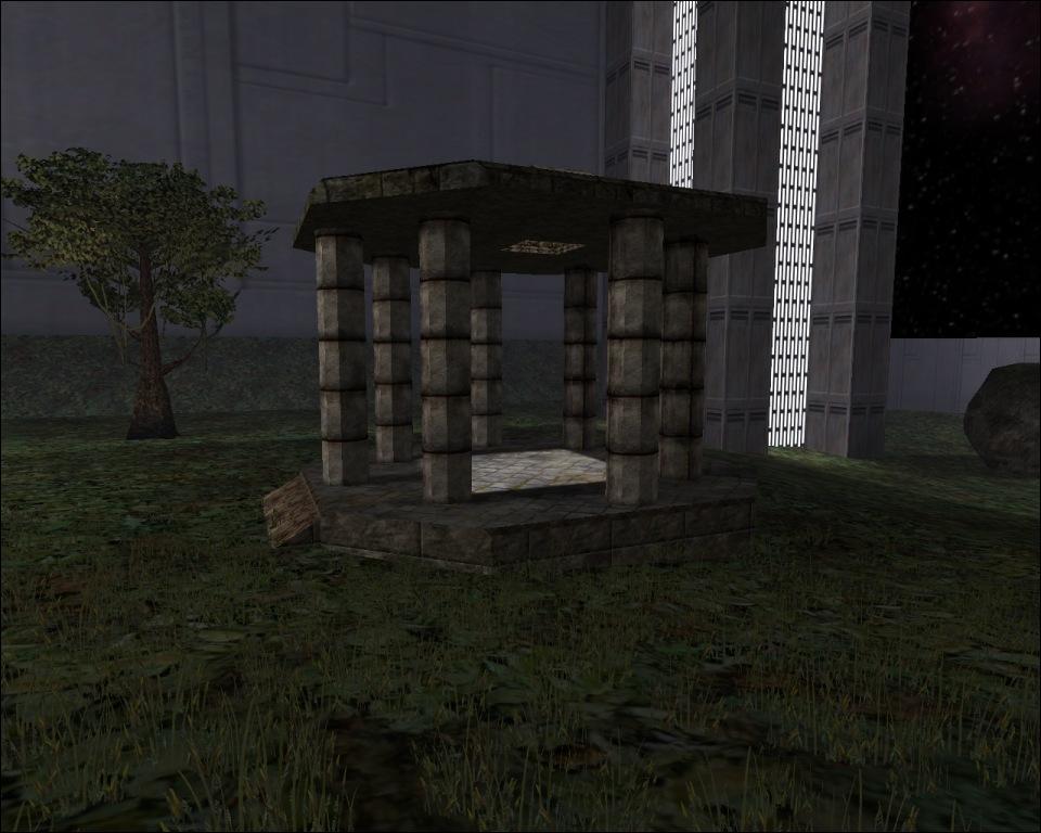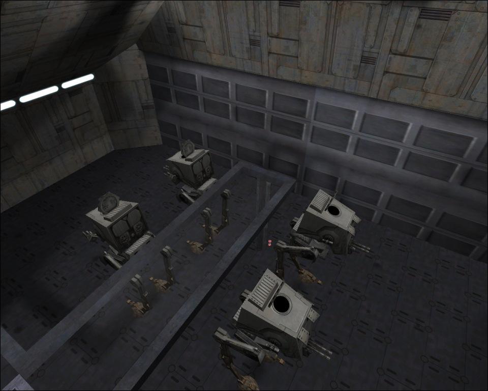 DESCRIPTION: The Worldship is an enormous, mobile ground-based combat training facility. It has two, almost identical bases on artifical terrain, with four AT-STs in each. On the top of the bases there are turrets for defense. Not far from the second base, there is a little dueling place. The ship has a command tower, with a very small hangar and a cargo holding area. For quick transport, there are some swoops at the turbolift entrance. The powering systems and generators are on a platform over the combat space, with a Z-95 Headhunter ready for takeoff( Note: there aren't other ways to get there, just spawning).