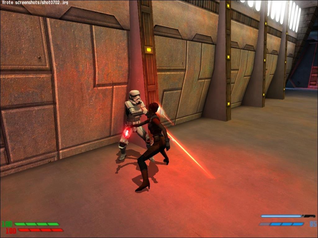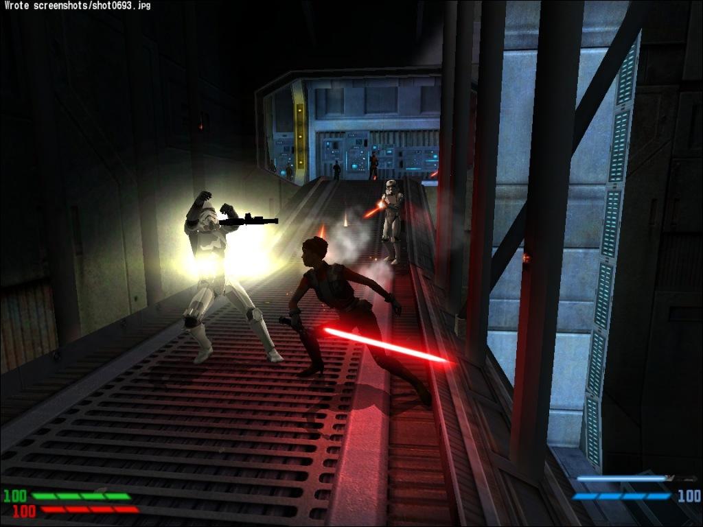 As for the background, you are Jaden Korr, by now promoted to Jedi Master, and your mission is to take down the Imperial Star Destroyer Exactor all on your own. After you have been brought on board inside a large crate, your primary objective is to destroy the entire ship by batteling your way to the command bridge (Which will be present in Part II) where you disable the main reactor's emergency shut-off, destroying said main reactor, which is located in the machine room (Part III) and then make your way to the escape pods (Part IV).