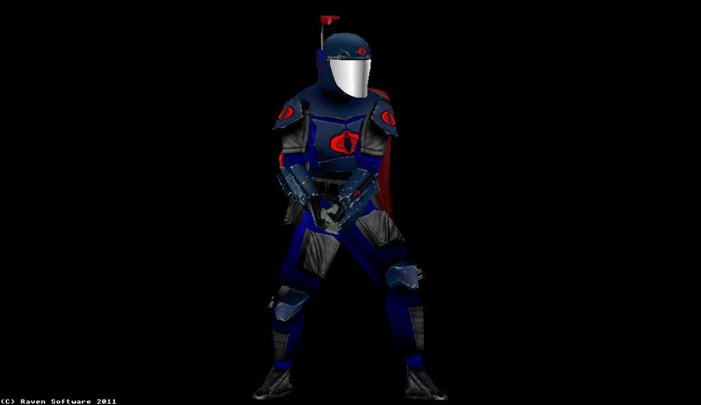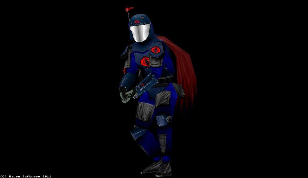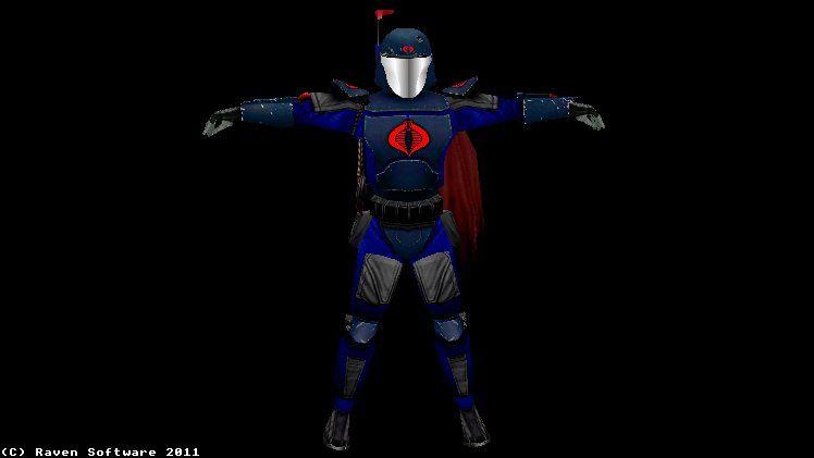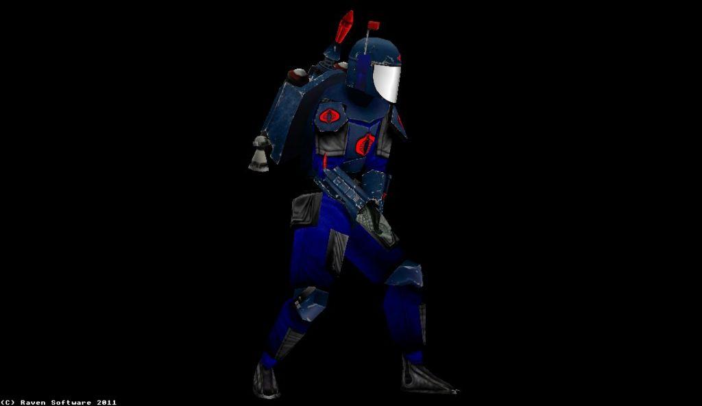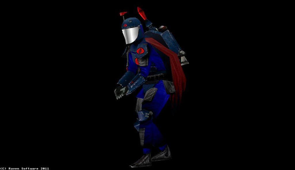 DESCRIPTION:I reskinned the Boba model to look a little like Cobra Commander.Added some new sounds.I added bot support,npc,and team colors(sorta)too.Some PsP files are in the model folder,so if you wanna edit Cobra Commander.You can use it how ya like,but please give credit where its due.Hope ya enjoy!
