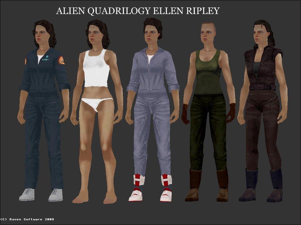 Included skins from all Alien Quadrilogy movies. Added also underwear skin and winter skin (for winter maps like a Hoth :)). All skins have team colors.