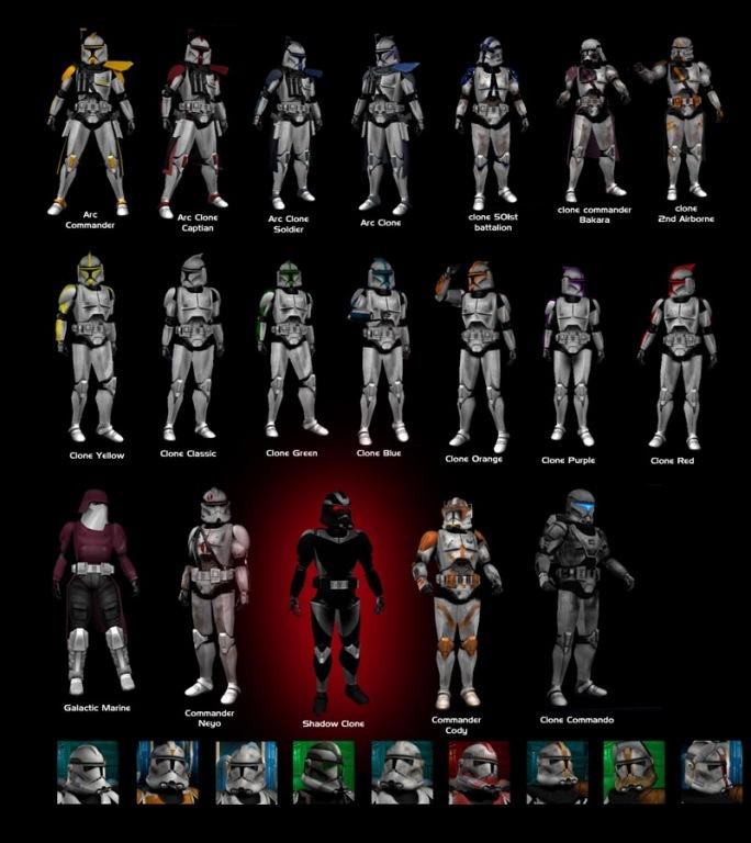 Description: This model pack contains just about every clone varient shown in Episode II, and III.