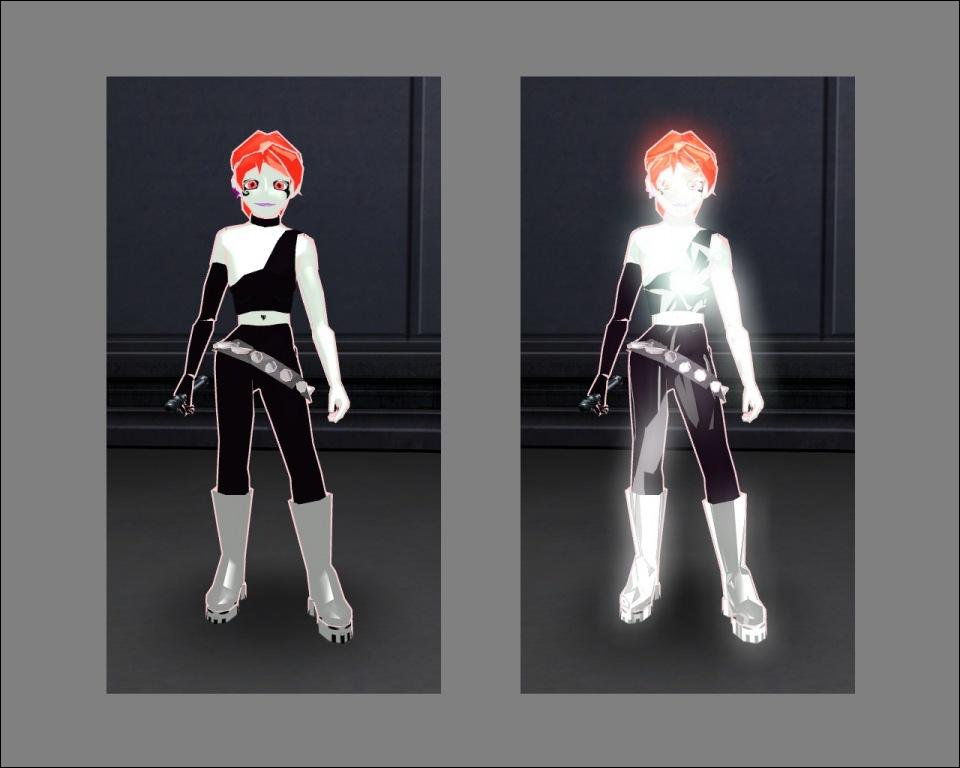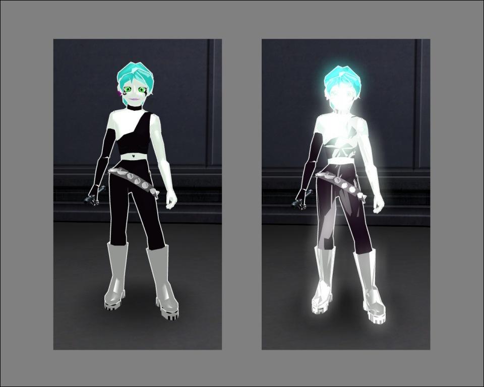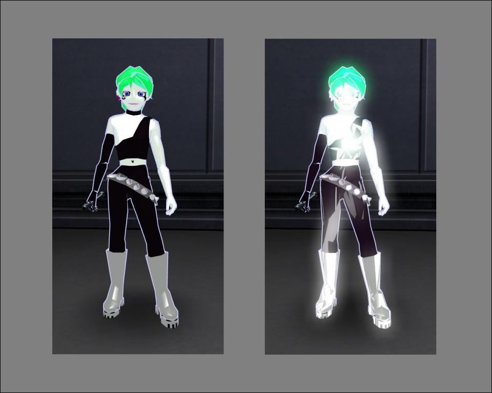 DESCRIPTION: Ok before anyone gets on me about the skin...this model was not made for detail...to be honest this was the second work I ever made...following Inuyasha...however as part of a current project I was attempting to create a method of making a character ghostly without the tacky holo-graphic appearance...and low and behold I happened to be watching tv with my younger brother...when Danny Phantom came on...certainly a childish show...but it did give me an idea...i had messed around and built this character a long time ago...but decided not to release it...but after noticing that in the show the ghosts were distinguished by slight glows and white or green etherial glows....so i thought that perhaps by combining the cell shading model style....and some pulsing white shaders..i could create a ghost like character...while this is certainly cartoony...and gets the point across...which was kind of the intent...so again will the skin is painted..it wasnt really meant for high detail...more to display a technique...although i believe the outline should be far more narrow for more realistic models.