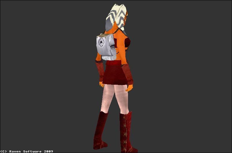 this is the Ahsoka Tano model from the clone wars as it is today, there are team skins and a backpack and a robe. It has bot support and npc support as well. Her saber she uses is the one AshuraDX made.