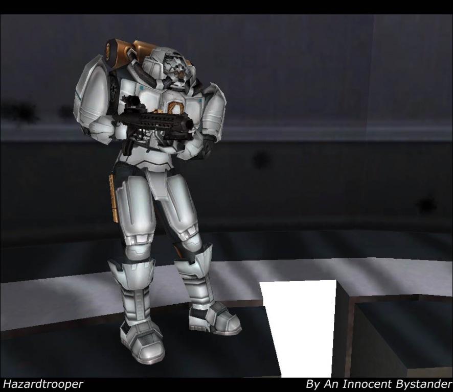 Hazardtroopers are soldiers wearing hard-suits that render the wearer invunerable to small arms fire. The armor is