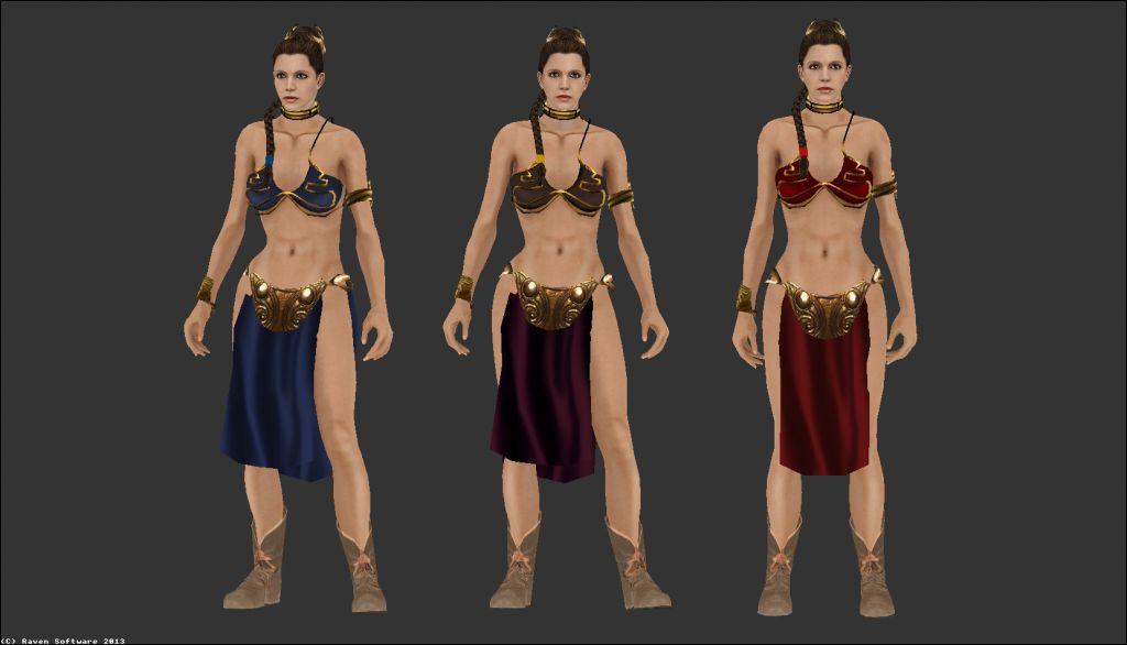 LeiaHD.pk3 and LeiaHDnpc.pk3 to "base" folder; dyring the game launch the console (shift ~); and input "npc spawn Leia"