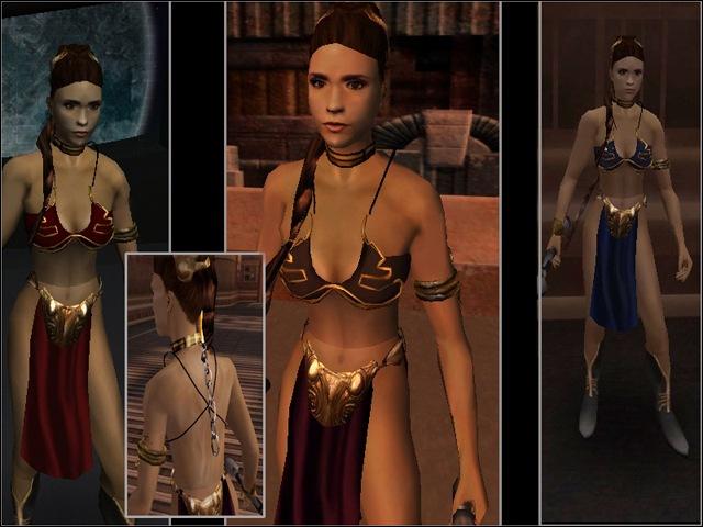 I thought it was a bit odd that Leia models were so few and far between. The couple I did find were very good so I was intimidated to even submit this, I never intended to when I made it. This was my first attempt at 3d modeling. Having no expierence made weighting the model quite aggravating. That's putting it mildly to say the least lol. Just thinking about how it was at first gives me a headache. I still havent mastered the process even after the many, many times I did it trying to get this one right. The model still isnt exactly how I intended it to be, and when I get it all down I'll probably update her. Although, Im very happy with how I weighted the dresses/skirts. I tried to be as accurate as I possibly could. Im still new to this whole 3d modeling thing, and a lot of my reference images were poor in quality. In the end, I was pleased when I saw it in the actual game. The Endor model is my favorite, even though the slave model is why I started this in the first place.