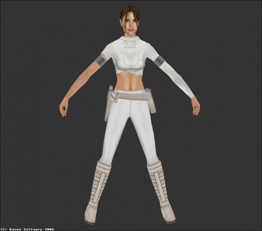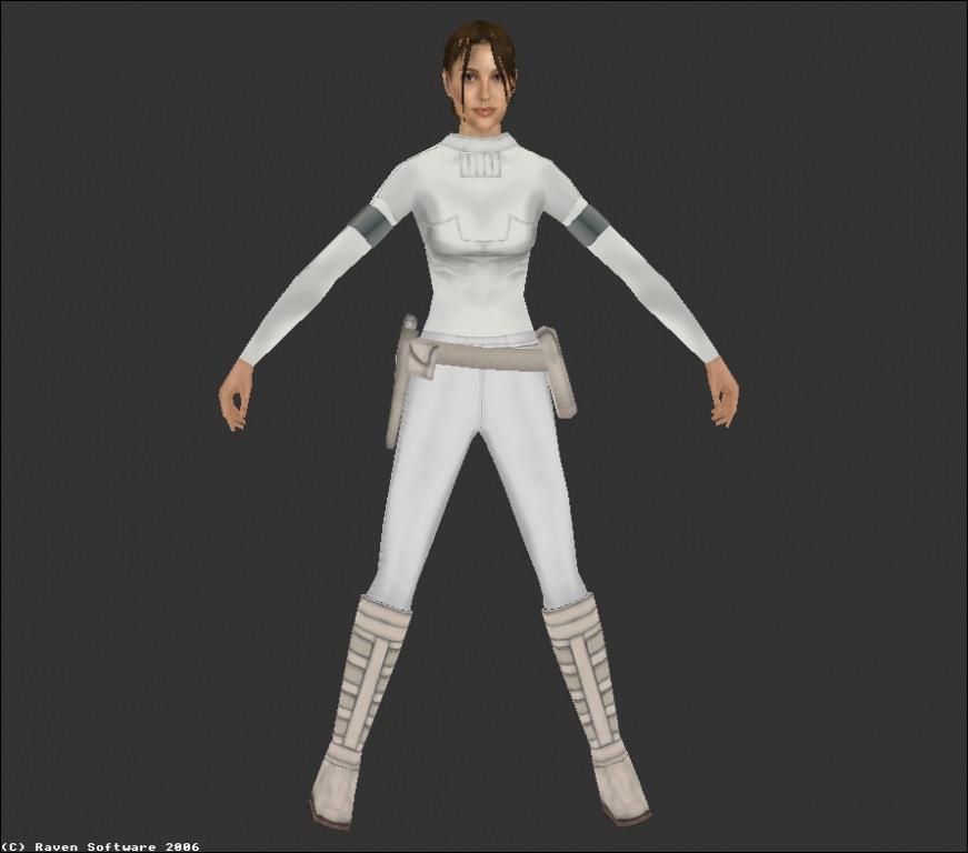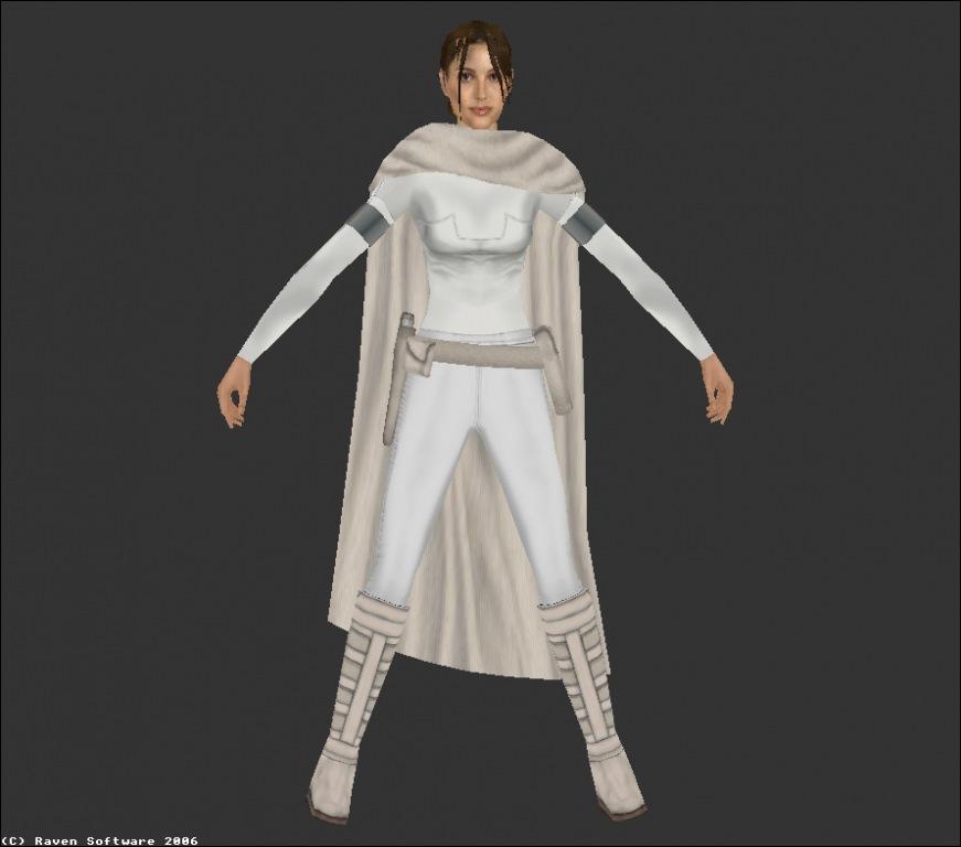 Default colour, is Padme with her non-scratched torso and cape, and the Blue team colour, is her with her non-scratched torso, and no cape, and the Red team colour represents the Scratched Padme. This model was made for the up-coming MBII mod, which is one of the greatest mods alive! For more information, go to www.moviebattles.com