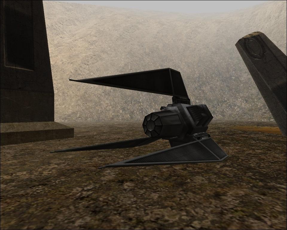 A lot of you, as I know, don't have a clue what this fighter is or where it came from. It was originally from an early Star Wars game, Rebel Assault II, made in 1995. It's actually a pretty good game, but the fighter always made me drool and I've been semi-obsessed with it ever since. Several good models have been made for X-wing Alliance, but I decided Jedi Academy needed one too, and the current model of it is just so insufferably inaccurate that it made want to pull all of my hair out and donate it to the bald.