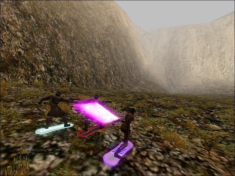 Dump hoverboard_if.pk3 in your gamedata/base directory within your Jedi Academy directory. For added community skins and SP swoop replacement, also add hoverboard_if_extras.pk3. Please note that the extra skins and SP swoop replacement will *not* function without hoverboard_if.pk3.