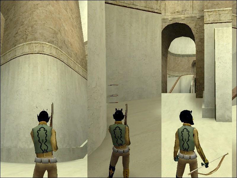 This is my first mode/model edit, ever. Basically i got the bowcaster model, took out all the hightech stuff, altered its shape into a long bow, rotated it, added a "string" and coloured the bow sorta wood-grainy brown and this is kinda the result. Remember this is my first attempt, and I JUST GOT LOTR- RETURN OF THE KING ON DVD w00t!