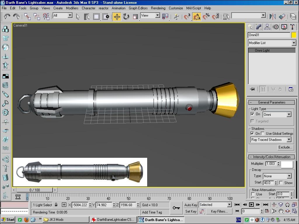 This hilt was modelled based on a source image from the Complete Star Wars Encyclopedia and is considered canon. This is by far the most detailed and precise lightsaber hilt I have ever constructed. The idea to make this came from the jk3files forums, where I saw an ongoing discussion about a Darth Bane wip... so I figured, if they're making the skin, why the hell shouldn't I make the lightsaber :)