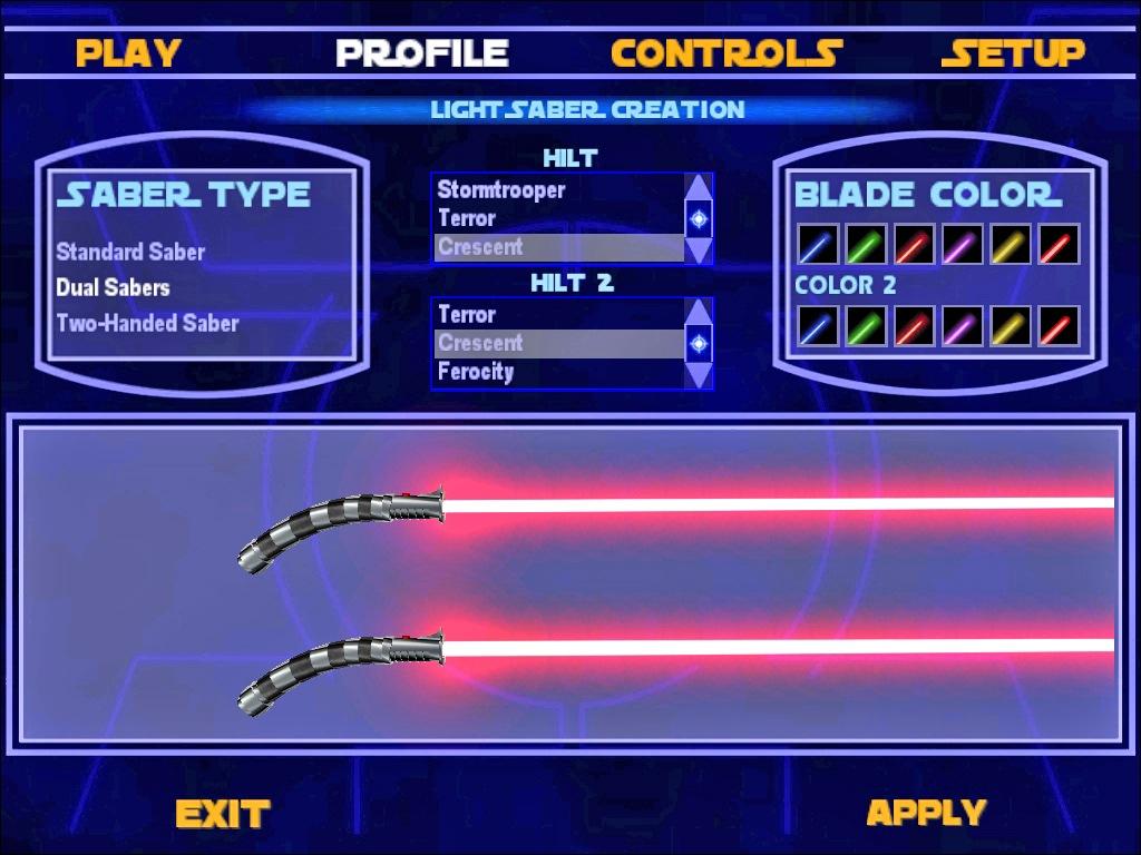 BUGS: None. But the way the sabers are held in the default dual-wield stance is somewhat dull. Don't ask me to fix this.